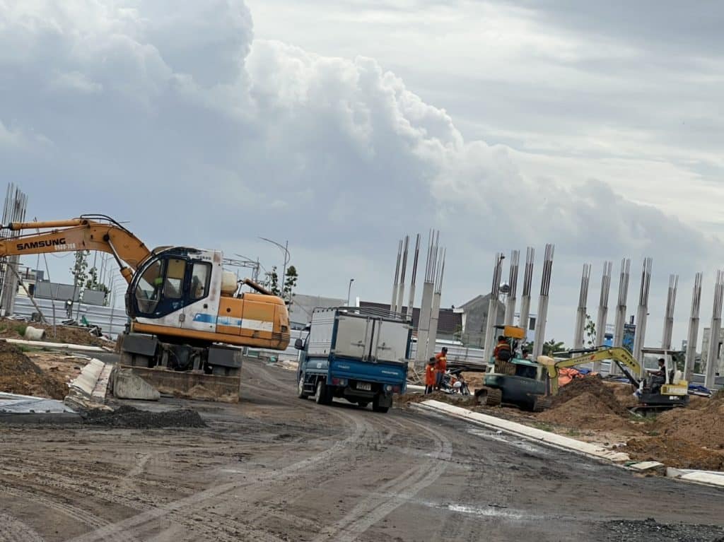 Giữa tháng 2/2022, máy móc và nhân công dự án STC Long Thành vẫn làm việc liên tục để đẩy nhanh tiến độ. Điều này có ý nghĩa rất lớn bởi đây là dự án đầu tay của chủ đầu tư STC Golden Land mang đến thị trường bất động sản trong nước.