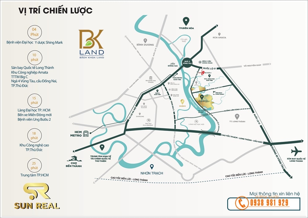 Giao thông thuận tiện: Đặc biệt, trục giao thông chính của dự án sẽ được kết nối với đường cao tốc TP. HCM – Long Thành – Dầu Giây với khoảng cách 6km, giúp rút ngắn thời gian di chuyển từ dự án tới sân bay quốc tế Long Thành và TP.HCM, chủ trương này đã được Tỉnh Ủy, UBND Tỉnh Đồng Nai và Bộ giao thông chấp thuận và sẽ triển khai thi công trong thời gian sớm nhất.