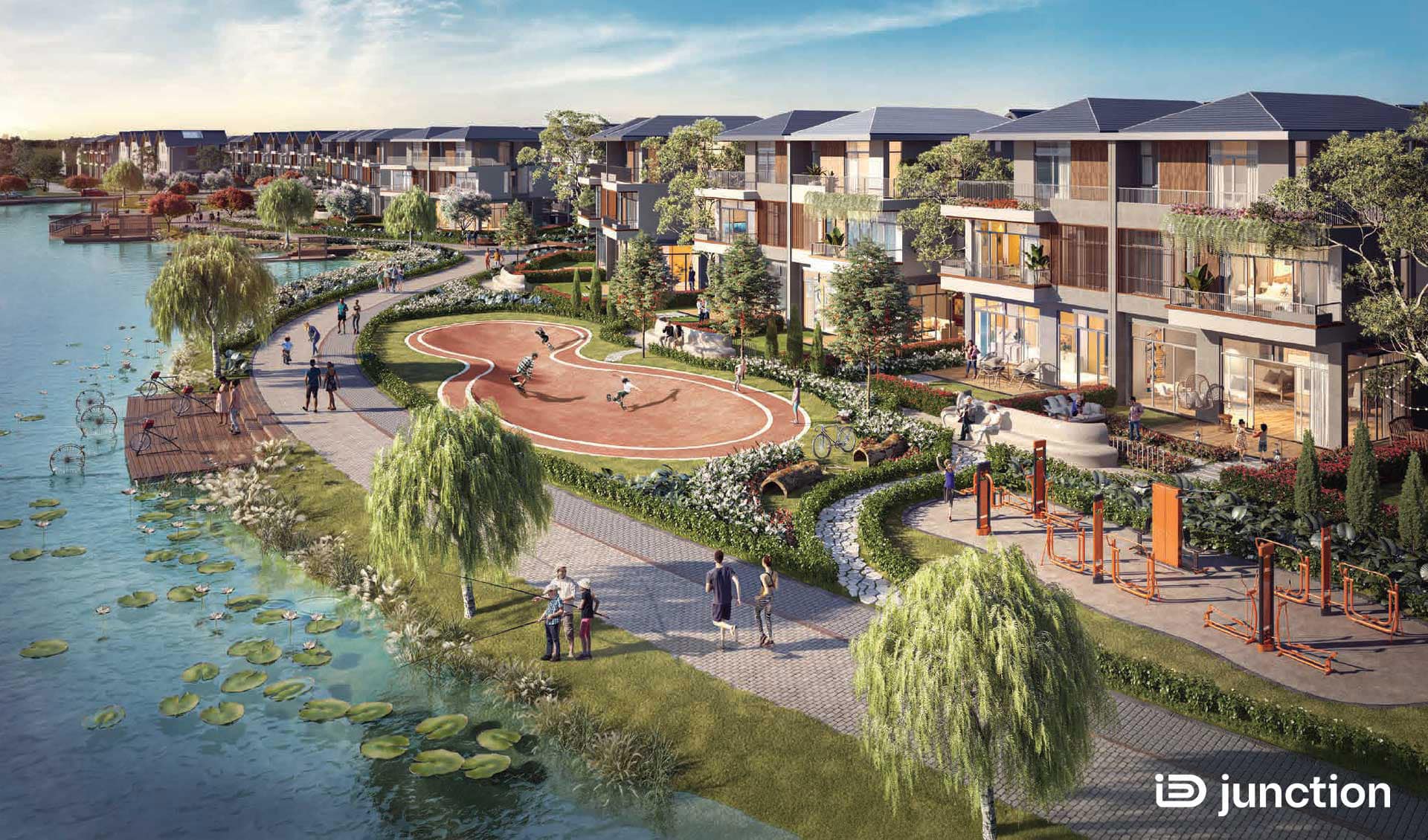 ➢ Ngoài việc ứng dụng công nghệ AI hiện đại bền vững, quản lý vận hành dự án và booking tiện ích thông qua App; ID Junction còn tập trung thiết kế mang tính bản sắc ở các khu cộng đồng, phân biệt các lối đi bộ – xe đạp và xe ô tô, mang hồ và sông vào trong cuộc sống thường nhật; để có thể tạo ra sự gặp gỡ về tinh thần giữa con người và thiên nhiên.
