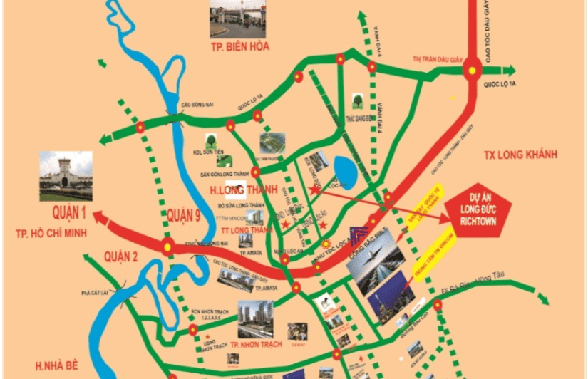 Dự án Khu dân Long Đức RichTown nằm giữa 3 tuyến đường cao tốc: