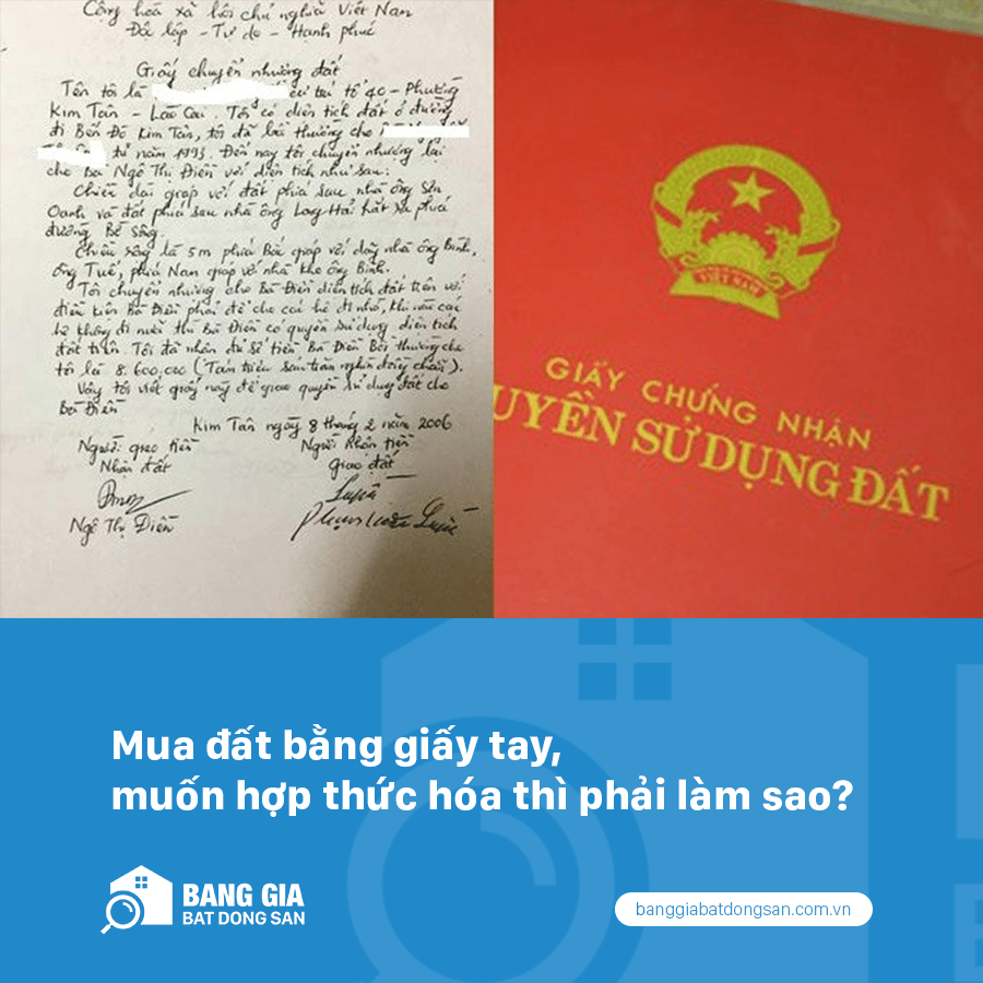 Mua bán đất bằng giấy tay là hình thức phổ biến trước khi Luật đất đai 2013 được ban hành, và hiện nay dù có quy định hợp đồng chuyển nhượng QSDĐ phải lập thành văn bản và có công chứng, nhưng trong ít nhiều trường hợp hai bên vẫn lập hợp đồng viết tay. Như vậy để hợp thức hóa hoạt động chuyển nhượng này thì cần làm gì?