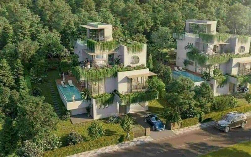 - 18 – 22 căn biệt thự ven sông có diện tích đất từ 600m2, diện tích đất sử dụng khoảng 350 – 400m2, quy cách xây dựng là 1 trệt và 1 lầu.