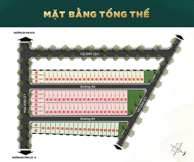 - Quy mô: 82 nền đất có diện tích từ 89 m2/nền