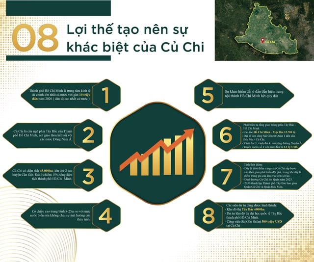 Có điều kiện nền tảng thực hiện xong với chuỗi đường nội bộ 6-11m, đường trải nhựa, có cây xanh, rãnh thoát nước . Vị trí đất ở khu vực cao ráo , không bị ngập. Trong và ngoài dự án đều đã có chuỗi trường học các cấp. Trong thời gian qua, đất nền củ chi luôn đạt được độ kiếm tìm cao. đòi hỏi có nhà đất tại tphcm chưa một lần nào hết hot với các nhà đầu tư, và an cư. Phát triển tphcm là làn sóng hiển nhiên và an toàn về lâu dài. Dưới dây là vài ba ưu thế lập ra sự khác lạ của đất nền củ chi .